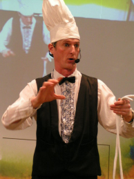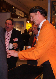Burkhard Schmidt, alias DER GROSSE BAGATELLO, finden Sie als Messe Zauberer in Berlin, auf der IFAT in München, der EXPO in Hannover und auf unzähligen Hausmessen. Er beherrscht die Kunst Messegäste zum Stehen zu bringen, ebenso wie perfekt auf der Standparty zu unterhalten.